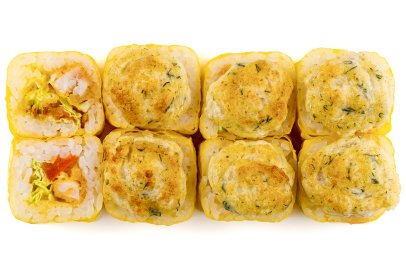 Рис, Нори, Омлет Тамаго, Лосось в кляре, Соус Спайси, Кляр, Соус Терияки ,