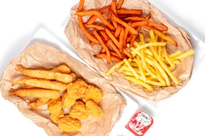 - Картофелем фри. Одно из самых популярных, востребованных яств. Сочетается с абсолютно разными продуктами: рыба, овощи, грибы, морепродукты.