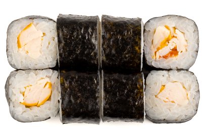Краб, Креветки, Нори, Помидор, Рис, Сыр сливочный, Копченая паприка,