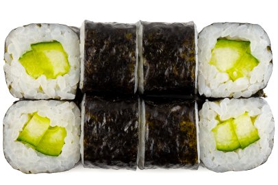 Кунжут, Лист салата, Нори, Огурцы, Перец болгарский , Помидор, Рис, Сыр сливочный, Дайкон,