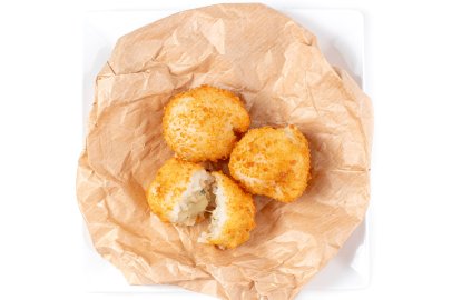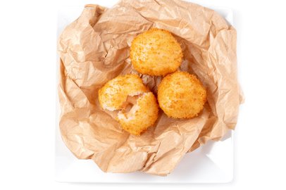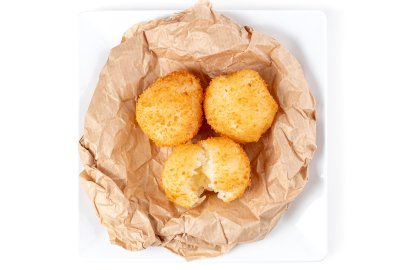 - Сырными шариками. Привлекают ярким сырным вкусом, хрустящей текстурой, тягучестью, разнообразием видов. Хорошо сочетаются с кисло-сладким или томатным соусом.